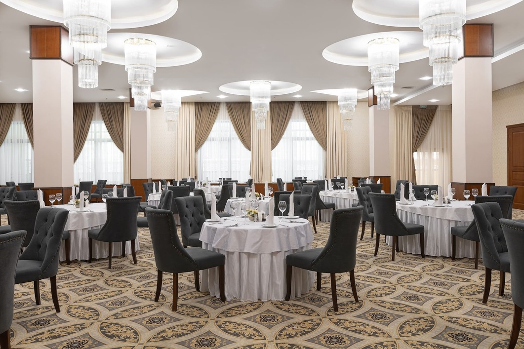 Ресторан рассчитан на 150 человек, что делает его идеальным местом для проведения торжественных мероприятий любого масштаба.